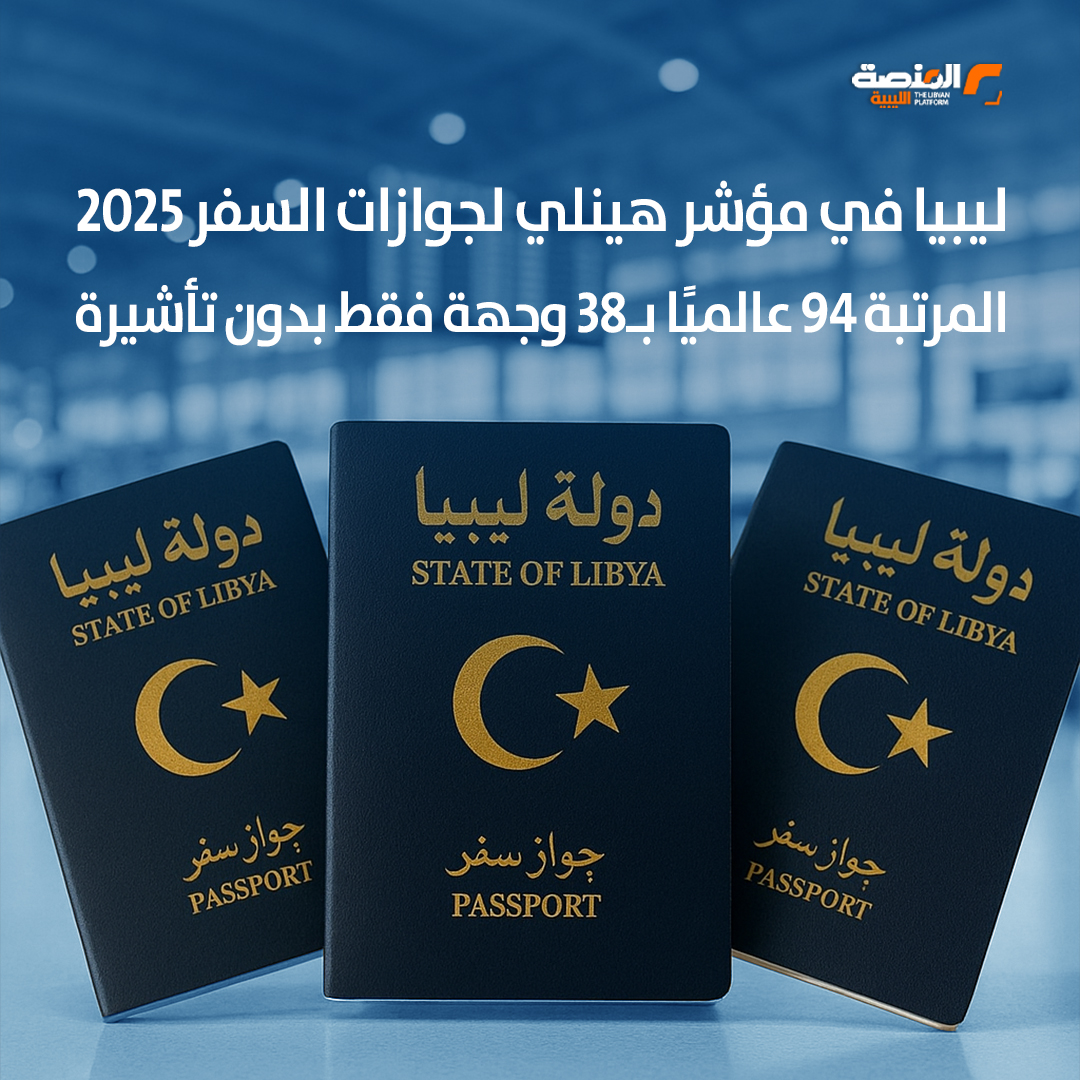 إنفوجراف ليبيا في مؤشر هينلي لجوازات السفر 2025: المرتبة 94 عالميًا بـ38 وجهة فقط بدون تأشيرة اقرأ المزيد » 2025-09-03