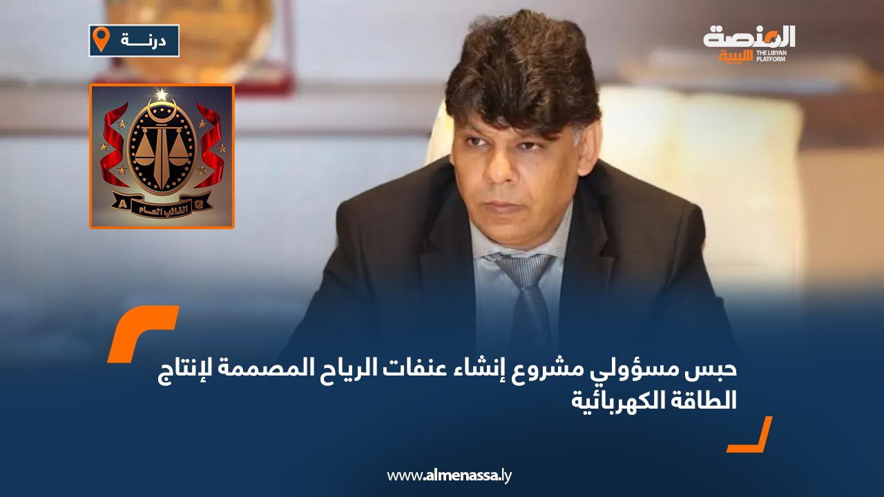 وأوضح المكتب أنه تم حبس مسؤولي مشروع إنشاء عنفات الرياح المصممة لإنتاج الطاقة الكهربائية في مدينة درنة لأنهم نفذوا اعتماد مستندي بقيمة 81 مليون يورو، رغم عدم توريد الشركة المتعاقد معها لمكونات العنفات في درنة، كما أنهما صرفا 8 ملايين دينار مقابل أعمال لم تنجزها الجهة المنفذة.