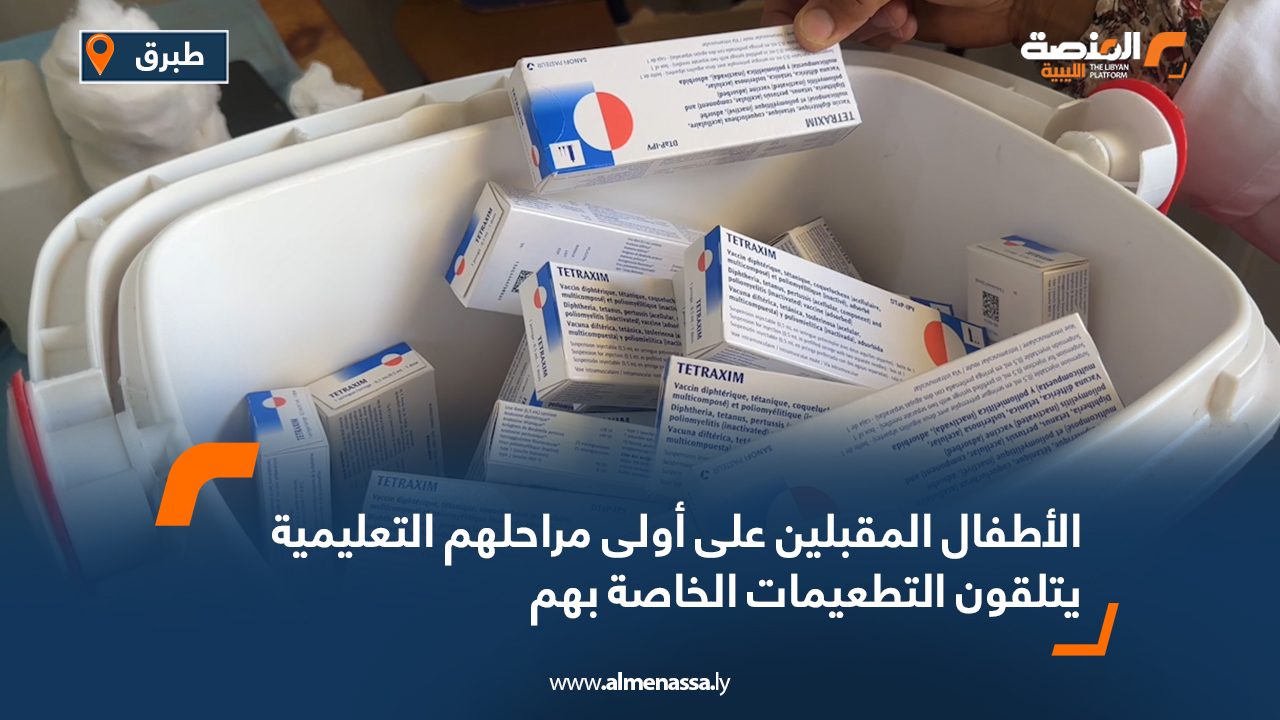 تلقى الأطفال المقبلين على الصف الأول الابتدائي من مواليد 2018 بطبرق؛ التطعيمات الرباعية الخاصة بهم، وذلك بعيادة المنارة.
