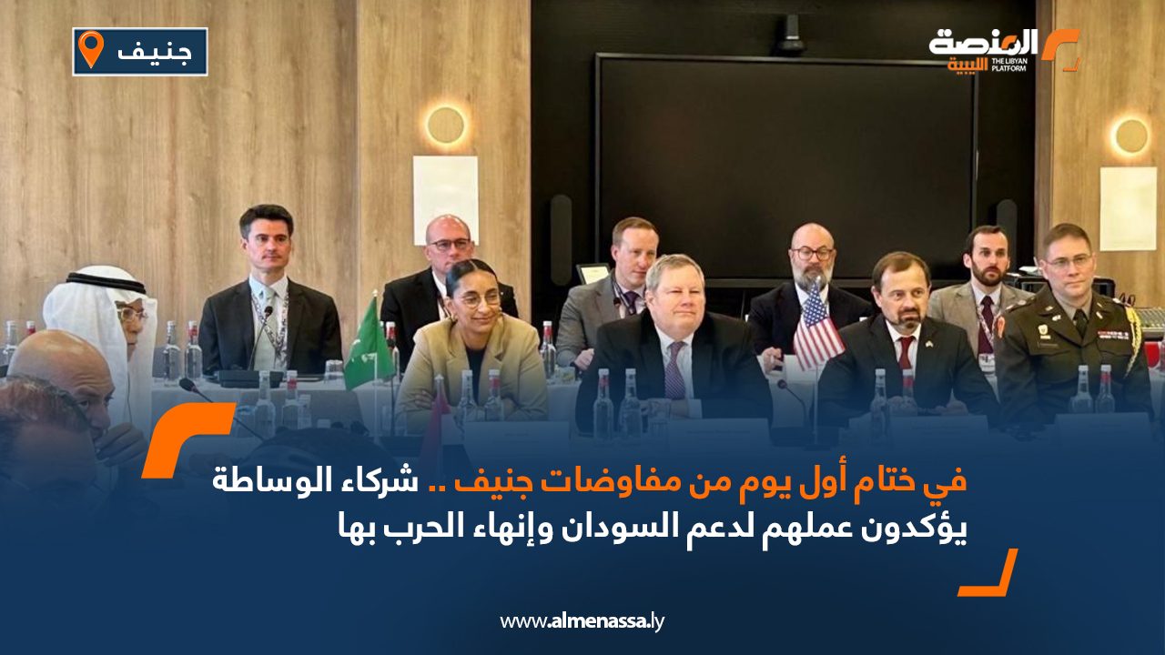 وقال شركاء الوساطة في بيان مشترك في ختام اجتماعات اليوم الأول من المحادثات: “نعمل بشكل جاد ومكثف في سويسرا في اليوم الأول، ضمن الجهود الدبلوماسية التي تهدف إلى دعم السودان، ووصول المساعدات الإنسانية ووقف الأعمال العدائية، والامتثال وفقاً لنتائج محادثات جدة السابقة، والمساعي الأخرى، والقانون الإنساني الدولي”.