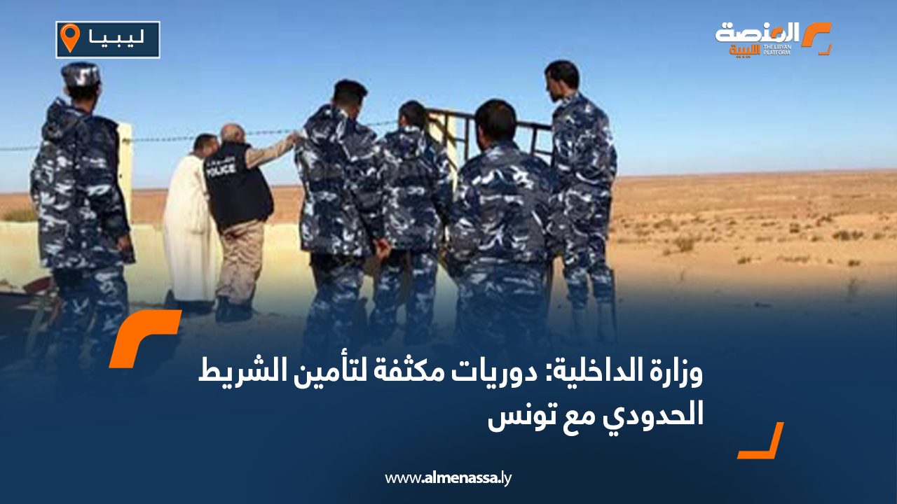 أعلنت وزارة الداخلية بحكومة الوحدة الوطنية إقامة دوريات أمنية مكثفة لتأمين الشريط الحدودي مع تونس.