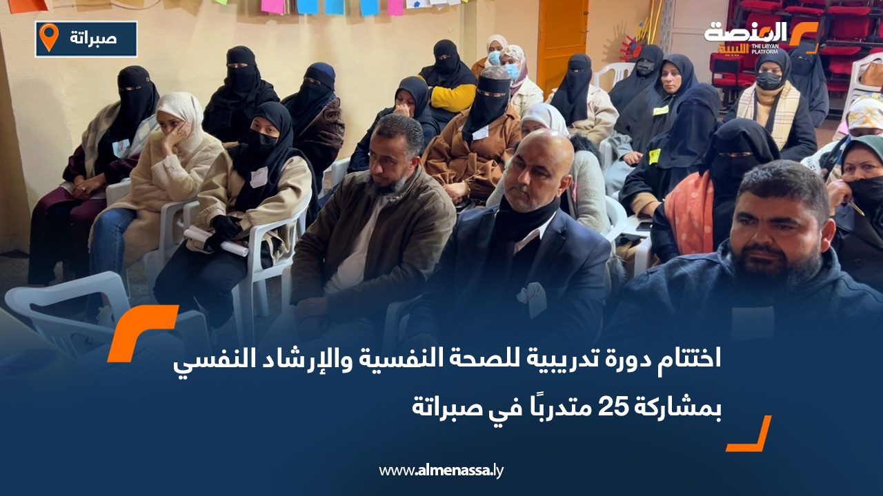 اختتم اتحاد ثوار صبراتة، بالتعاون مع مستشفى الرازي للأمراض النفسية والعصبية ومراقبة التربية والتعليم صبراتة والجمعية الليبية للعلوم النفسية، الدورة التدريبية للمختصين النفسيين والاجتماعيين في مجال الصحة النفسية والإرشاد النفسي.