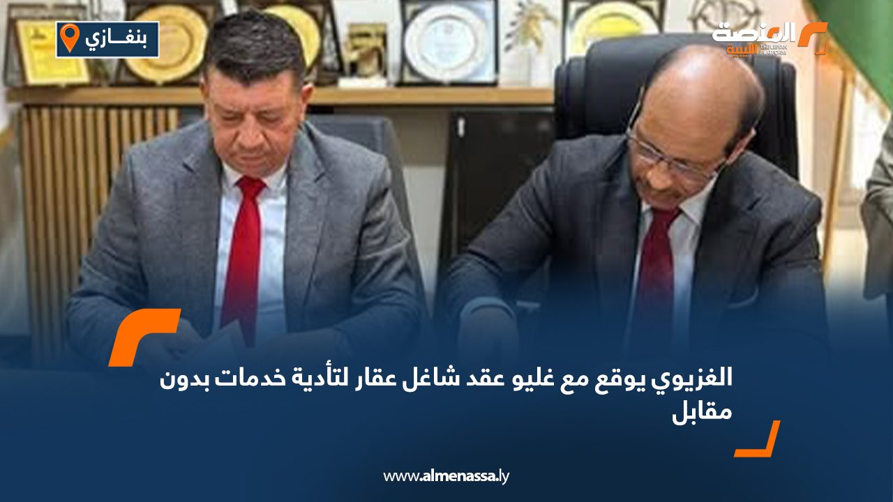 وقع وزير المواصلات والنقل بالحكومة الليبية، عبدالحكيم الغزيوي، مع رئيس مجلس إدارة مصلحة أملاك الدولة عبدالمنعم محمد غليو، عقد شاغل عقار لتأدية خدمات بدون مقابل في المواقع التابعة لوزارة المواصلات والنقل.