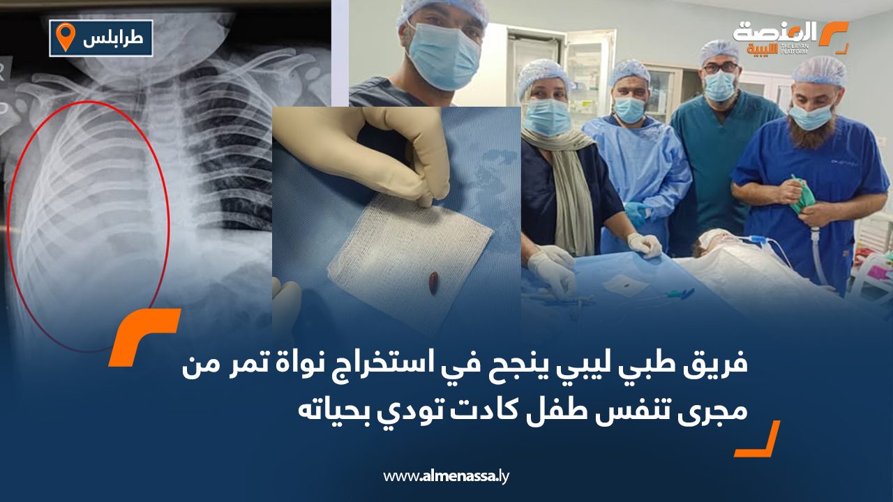 وأفادت المصحة أنه تم إخراج جسم يسد مجرى التنفس ( نواة تمر ) ومعالجة المضار التي أدت لهذا الاختناق، مشيرة إلى أن الطفل بحالة جيدة.
