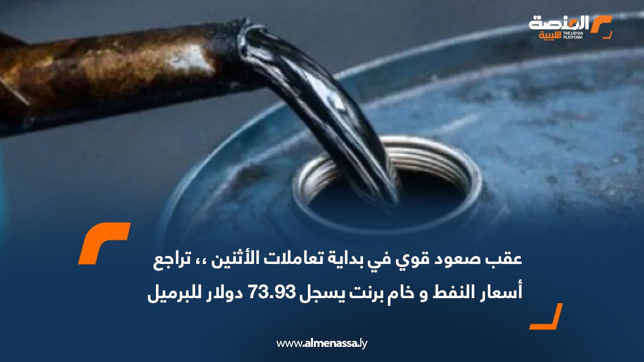وتراجع خام برنت عند الساعة 9:15 بتوقيت ليبيا بنسبة 0.4% إلى 73.93 دولار للبرميل ، في حين تراجع الخام الأمريكي بنسبة 0.3% إلى 72.80 دولار للبرميل وفقاً لبيانات رويترز