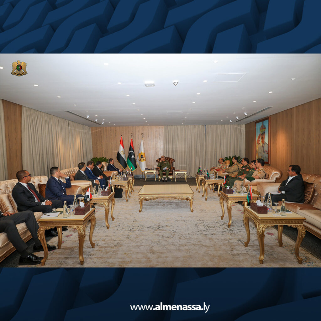 استقبل القائد العام للقوات المسلحة المشير “خليفة حفتر” رئيس المخابرات العامة المصرية، اللواء “حسن رشاد” والوفد المرافق له، وذلك في مكتبه بمقر القيادة العامة – بنغازي.