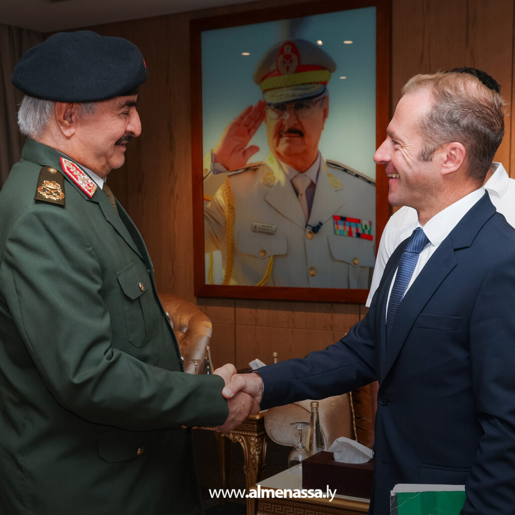 استقبل القائد العام للقوات المسلحة، المشير خليفة حفتر، المبعوث الخاص للرئيس الفرنسي، بول سولير، في مكتبه بمقر القيادة العامة ، حيث نقل سولير تحيات الرئيس الفرنسي إيمانويل ماكرون للقائد العام والشعب الليبي.