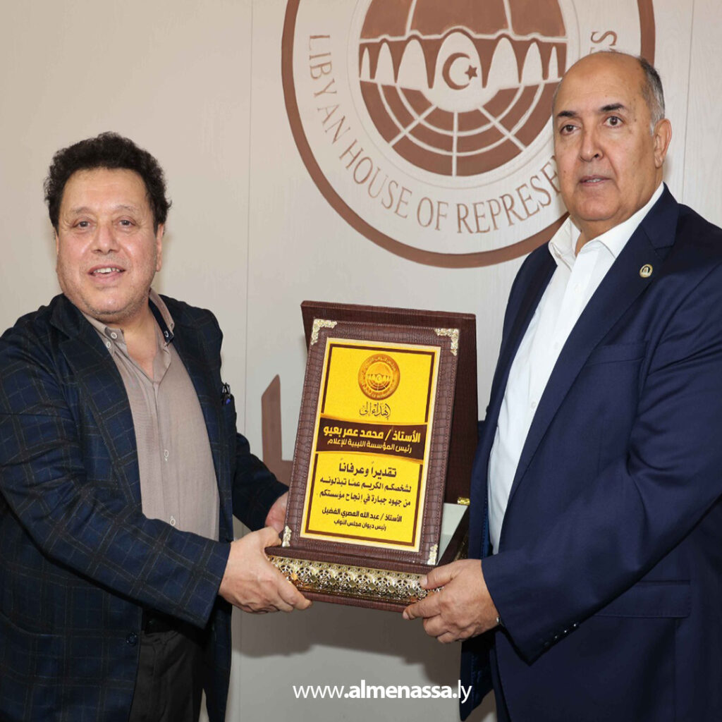 وفي ختام اللقاء، كرم الأستاذ المصري الفضيل الأستاذ بعيو تقديرا لمواقفه الوطنية ودعمه المستمر للمؤسسات الشرعية ولصوت المواطن الليبي على المستويين المحلي والدولي.