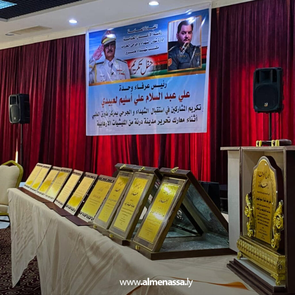 وفي ذات المناسبة، كرم مكتب الشهداء والجرحى المشاركين في استقبال الشهداء والجرحى أثناء معارك تحرير مدينة درنة، تعبيرًا عن الامتنان لمواقفهم الوطنية وتضحياتهم.