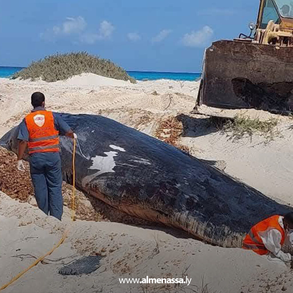 أشرفت الإدارة العامة لأمن السواحل فرع الهلال النفطي، بالتعاون مع شركة الخدمات العامة واللواء 166 مشاة، على دفن أربعة حيتان من نوع “العنبر” نافقة بشاطئ منطقة أمرير قابس، في عملية هدفت إلى منع أي آثار بيئية أو صحية سلبية على المواطنين.