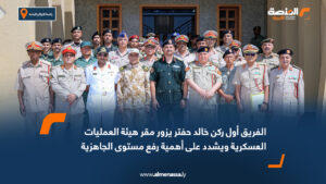أمني وعسكري الفريق أول ركن خالد حفتر يزور مقر هيئة العمليات العسكرية ويشدد على أهمية رفع مستوى الجاهزية اقرأ المزيد » 2025-09-19