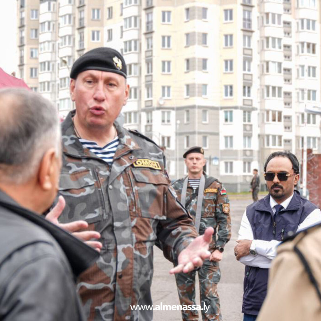 قام وفد رفيع المستوى من وزارة الداخلية بالحكومة الليبية صباح أمس الخميس بزيارة إلى مقر فرقة “OMOH” البيلاروسية، إحدى الوحدات المتخصصة في مكافحة الشغب، والتي تتبع وزارة الشؤون الداخلية البيلاروسية وذلك في إطار تعزيز التعاون الأمني الدولي ورفع كفاءة الأجهزة الأمنية.
