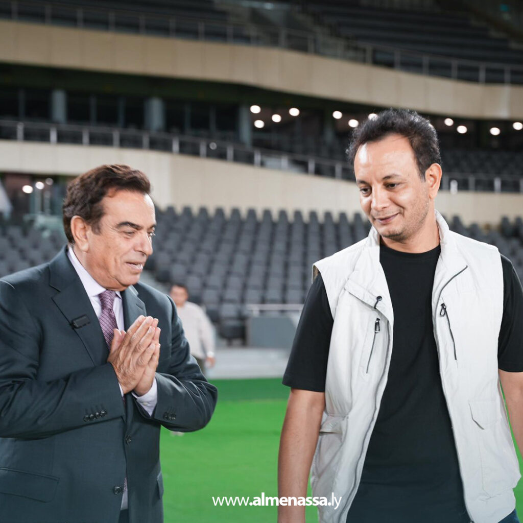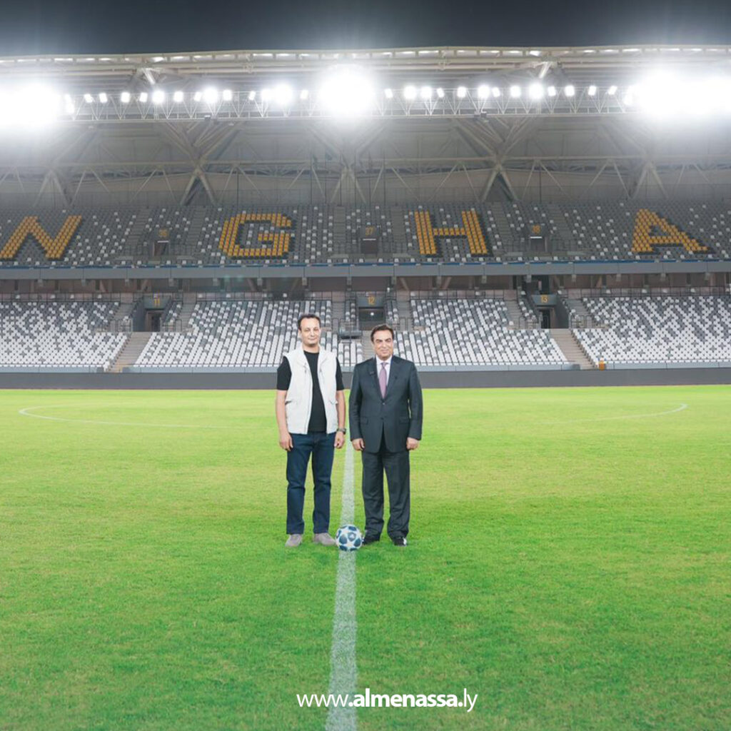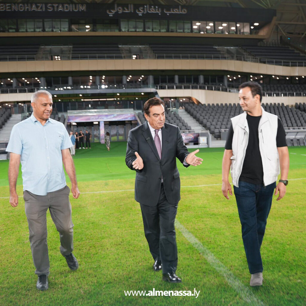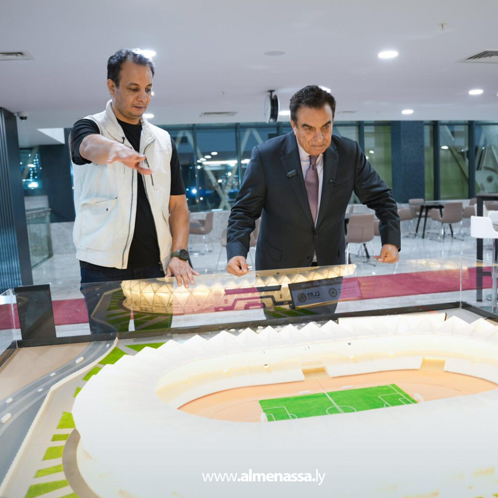 واطلع قرداحي رفقة المهندس بالقاسم حفتر على مرافق الملعب وتجهيزاته الحديثة المنفذة وفق معايير دولية متقدمة، معبرا عن إعجابه بما رآه من تصميم متقن وبنية قوية ورؤية واضحة تقف خلف هذا المشروع العملاق.
