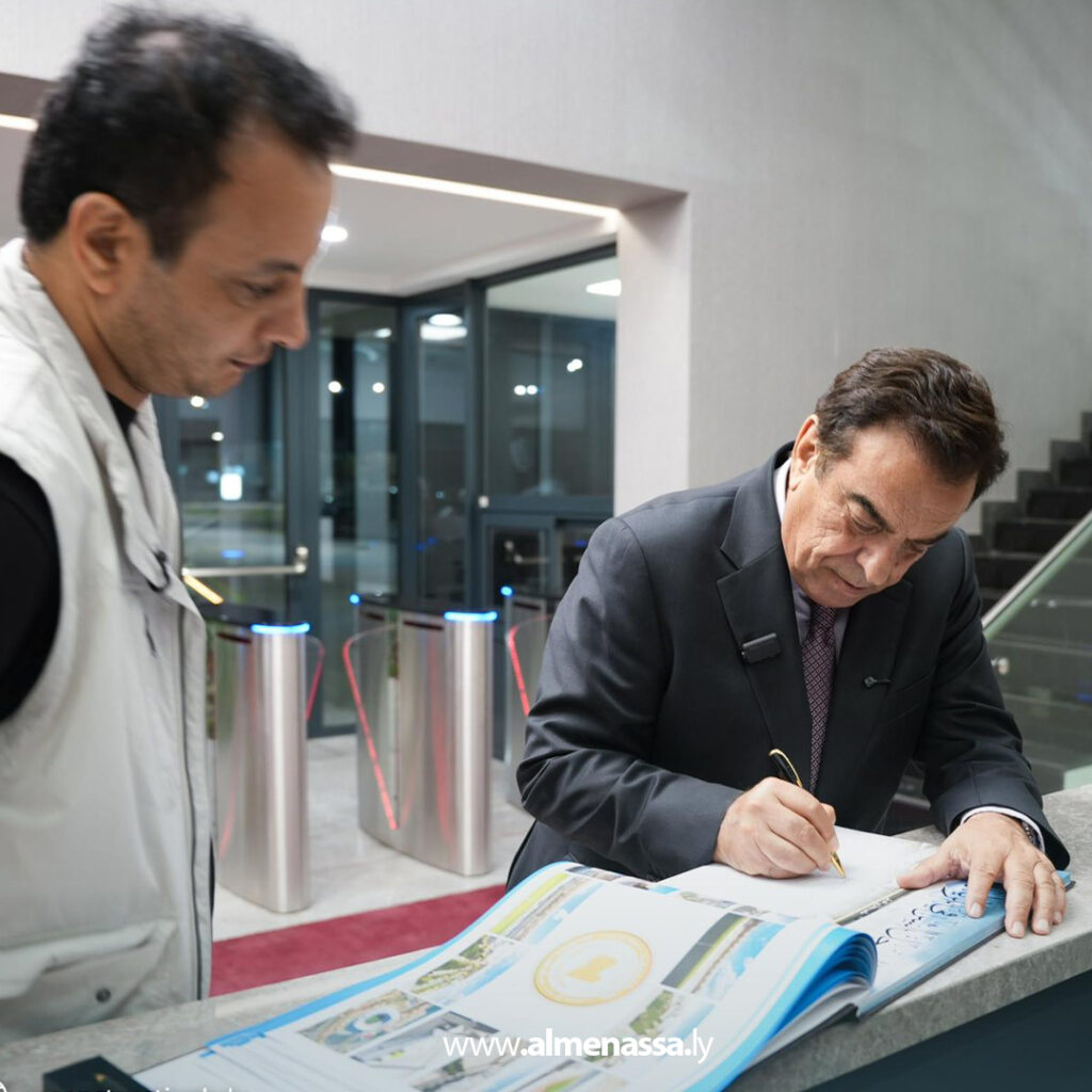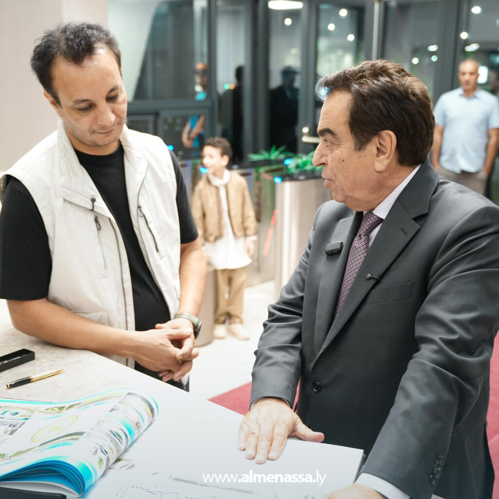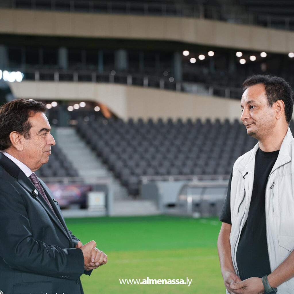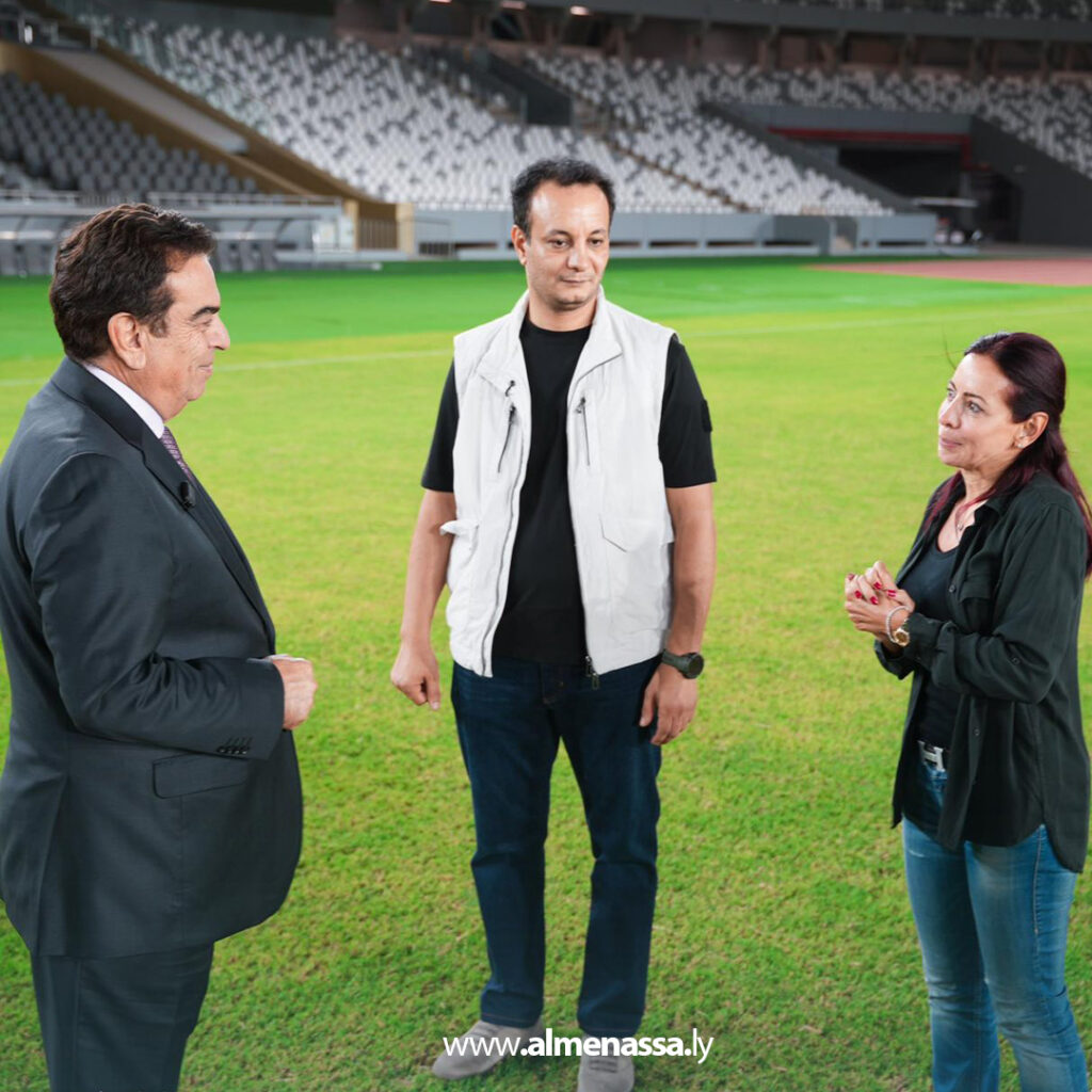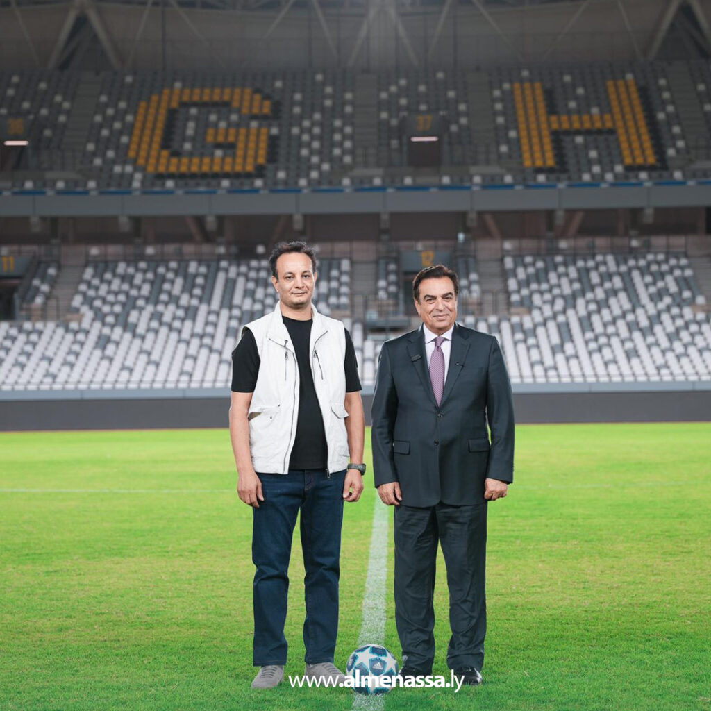 واطلع قرداحي رفقة المهندس بالقاسم حفتر على مرافق الملعب وتجهيزاته الحديثة المنفذة وفق معايير دولية متقدمة، معبرا عن إعجابه بما رآه من تصميم متقن وبنية قوية ورؤية واضحة تقف خلف هذا المشروع العملاق.