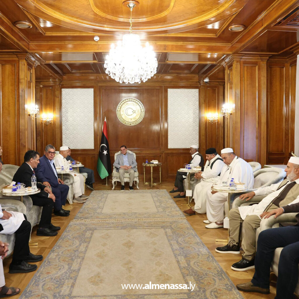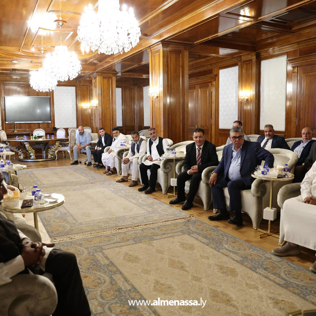 وأكد الدبيبة خلال الاجتماع أن الحكماء والأعيان يمثلون ركيزة أساسية في مسار المصالحة ولم الشمل، مشددا على اهتمام الحكومة بتمكين هذه المكونات الاجتماعية باعتبارها شريكا أساسيا في الاستقرار والتنمية.