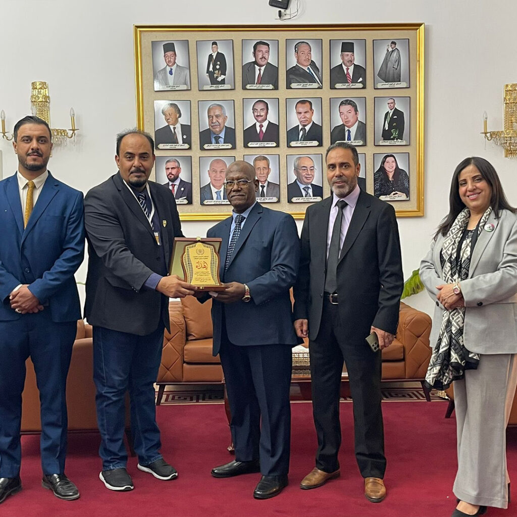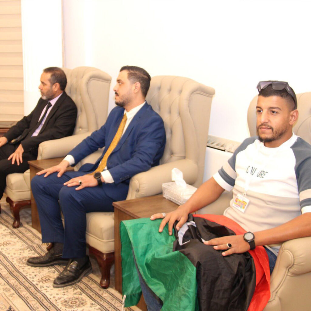 وكان في استقبال الفريق كل من رئيس قسم الشؤون السياسية الدكتور عمر المشري، والمستشار بالمندوبية الليبية لدى جامعة الدول العربية، الدكتور رمضان البرغوثي، سعاد الحاسي المستشار السياسي، والأستاذ إبراهيم الجراري مسؤول العلاقات العامة.