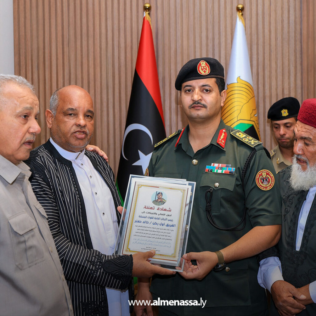 وأشاد الفريق أول ركن خالد حفتر بالدور البارز لقبيلة زوية في مساندة القوات المسلحة خلال حربها على الإرهاب، مؤكداً تقديره لتضحيات أبنائها ومواقفهم الوطنية المشرفة في حماية الوطن وتعزيز الأمن.