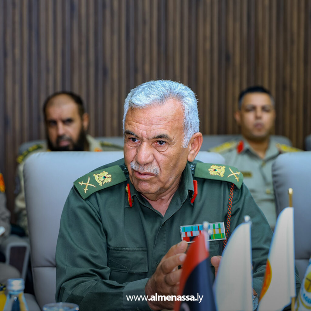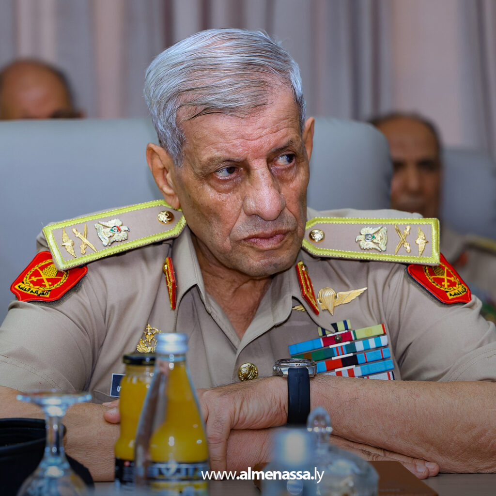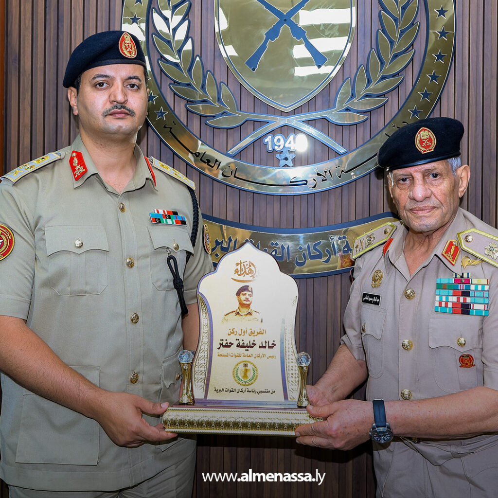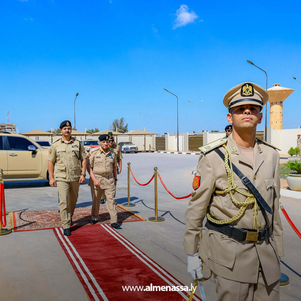 رئيس الأركان العامة للقوات المسلحة الفريق أول ركن خالد حفتر، يتفقد مقر رئاسة أركان القوات البرية، في زيارة لتقييم سير العمل والوقوف على مستوى الأداء.