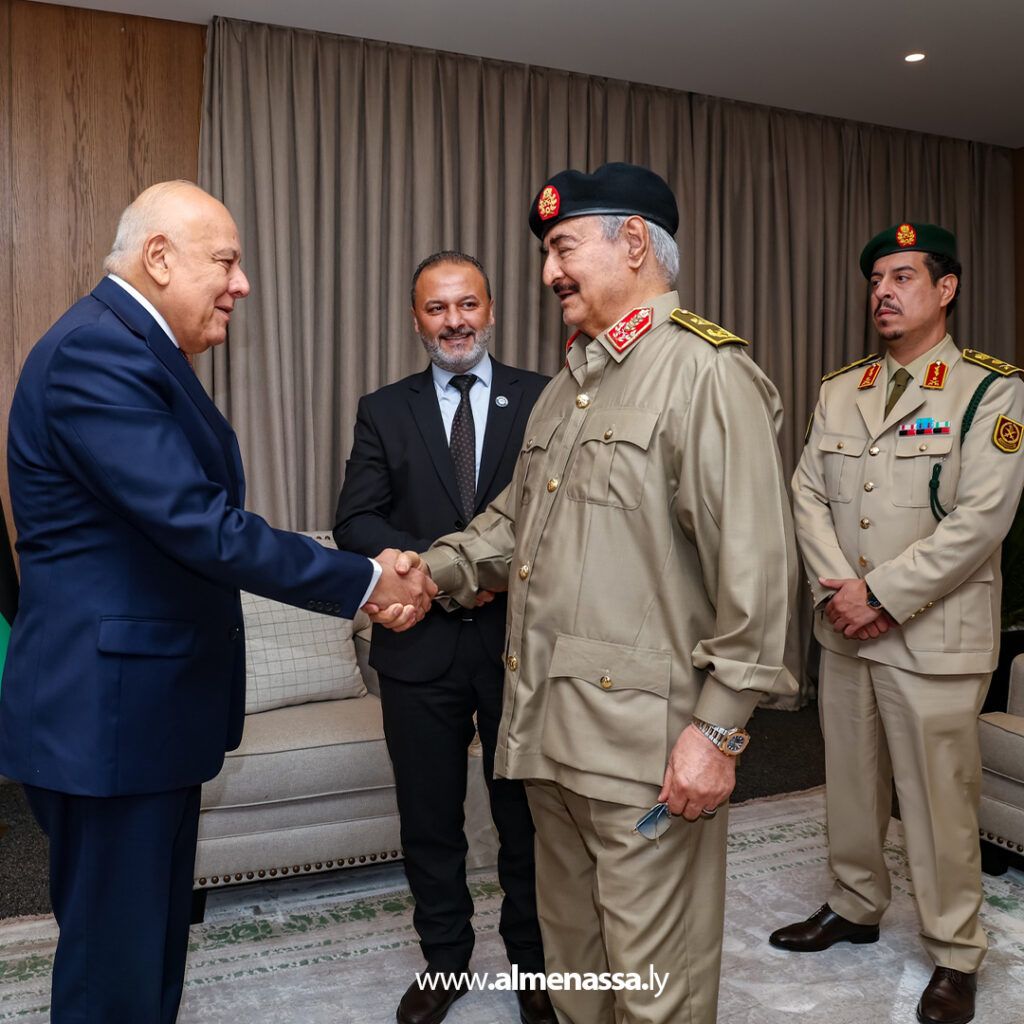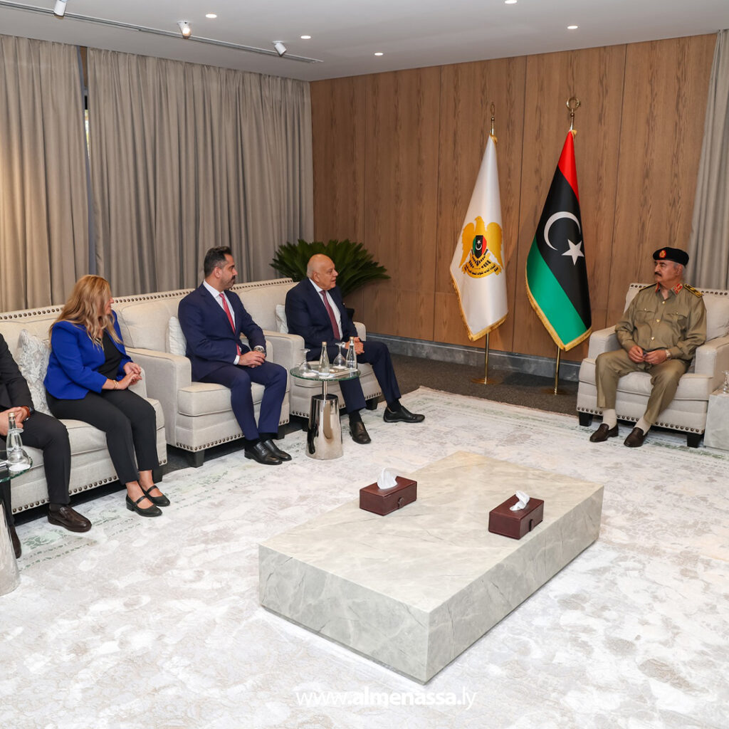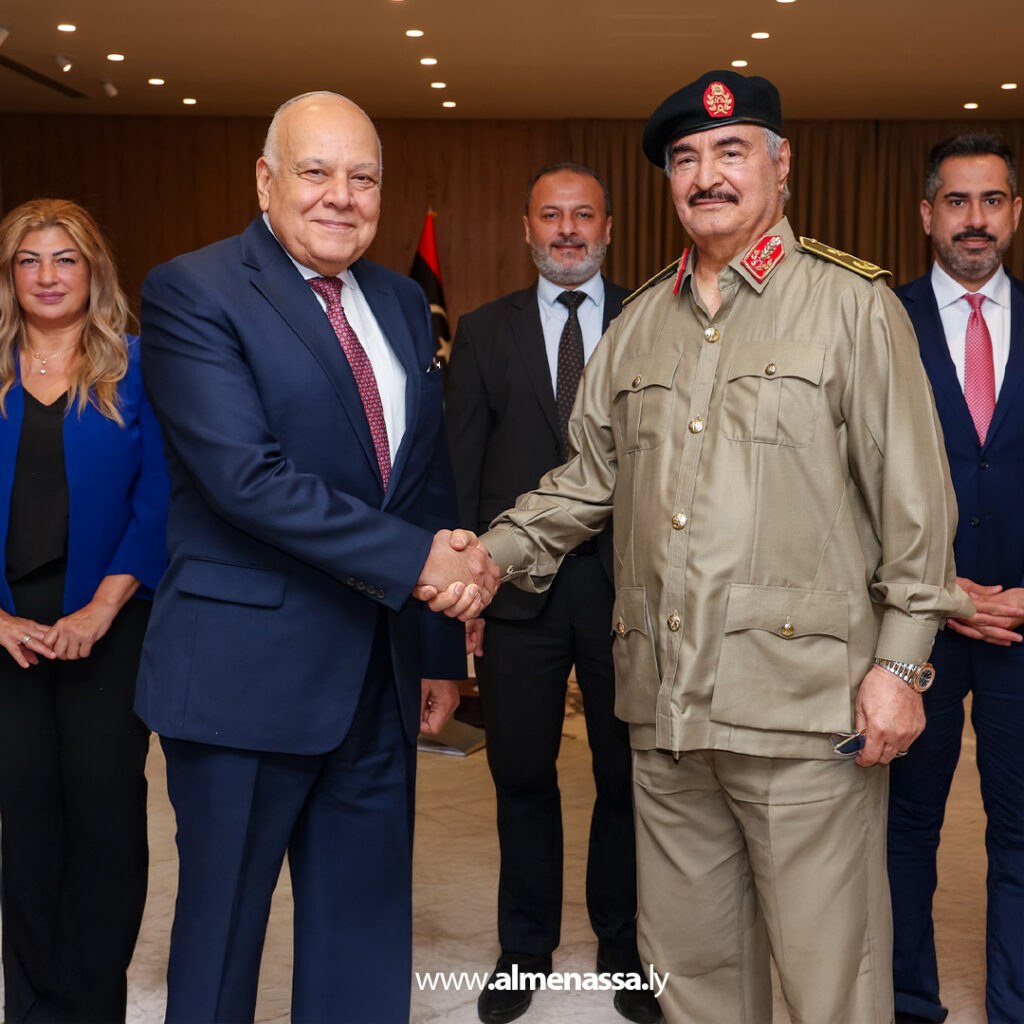 Field Marshal Khalifa Haftar, Commander-in-Chief of the Armed Forces, received Dr. Amr Salama, Secretary-General of the Association of Arab Universities, along with his accompanying delegation and Dr. Azeddine Al-Darsi, President of Benghazi University.
